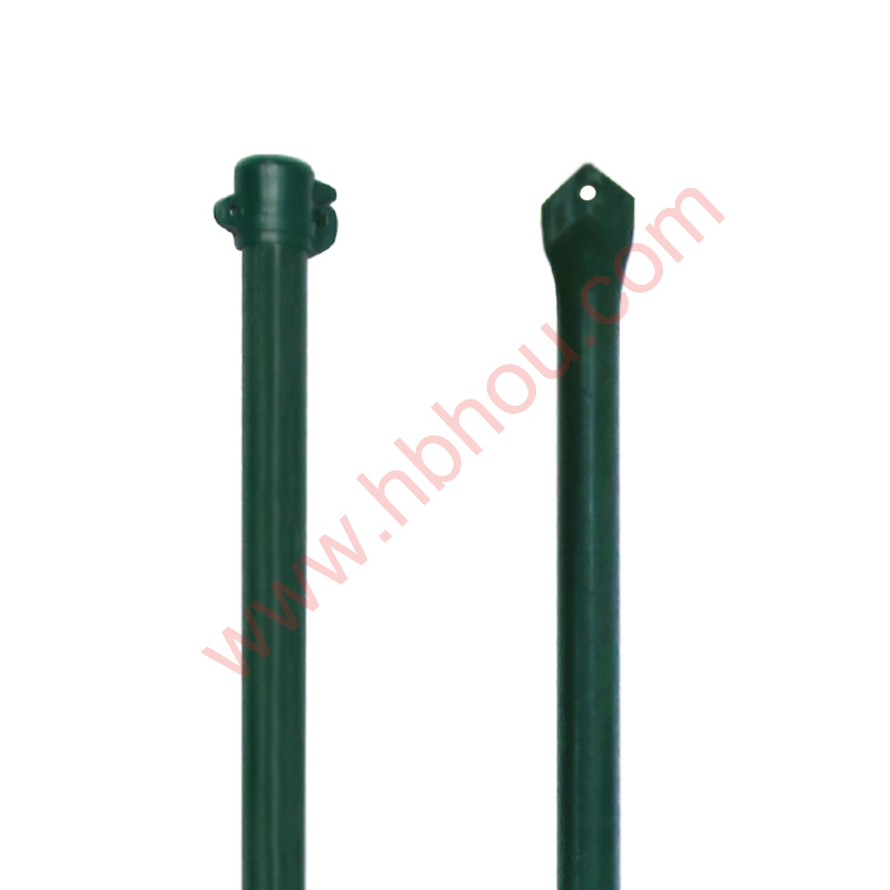 Treatment: powder coated or PVC coated to against rust, the top with one special plastic cap to hold fence or electric wires.